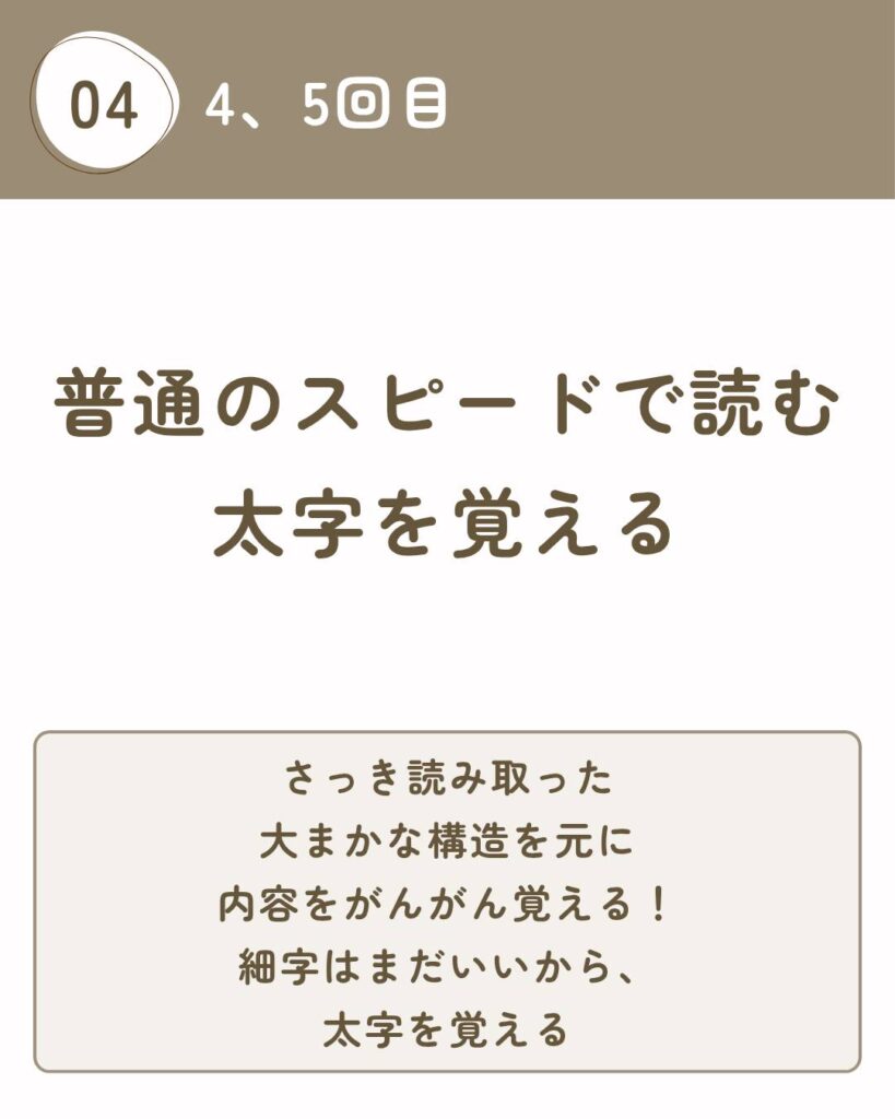 ◆4〜5回目:普通のスピードで読む(太字を覚える)
